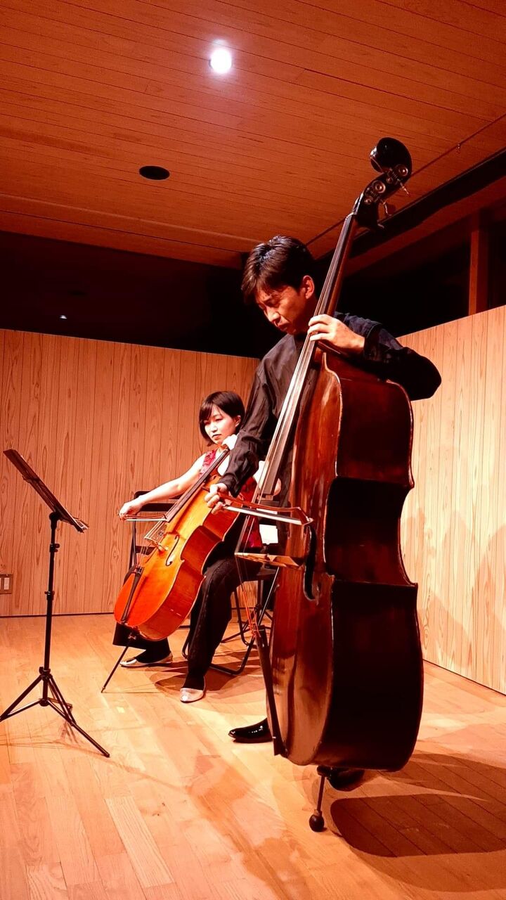 2021年2月12日 チェロ&コントラバス in SNOW チェロ奏者・久良木夏海コンサートシリーズ“なつくら”、第3回も大好評にて終了。今日本で最も注目のコントラバス奏者の助川龍さんをお迎えしての第3回、雪がしんしんと降り続く中、雪に覆われた噺館の冬景色にピッタリの曲が鳴り響く。チェロとコントラバスの2重奏、お互いの楽器が会話しているよう、それにしてもコントラバスって、でっかい楽器だなあ~。 前へ 次へ