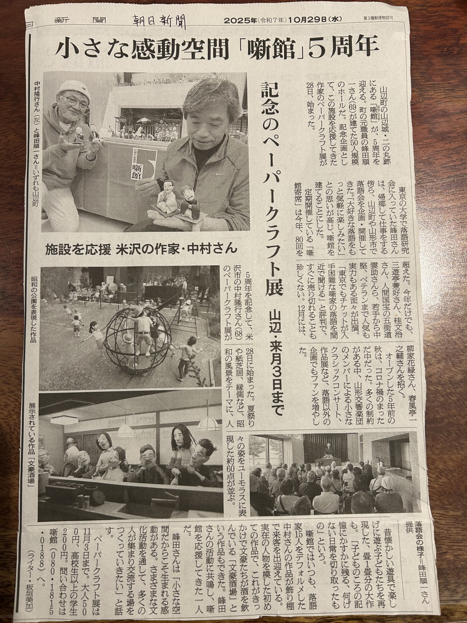 噺館五周年と記念事業「中村隆行 ペーパークラフト展」を、取り上げていただきました。