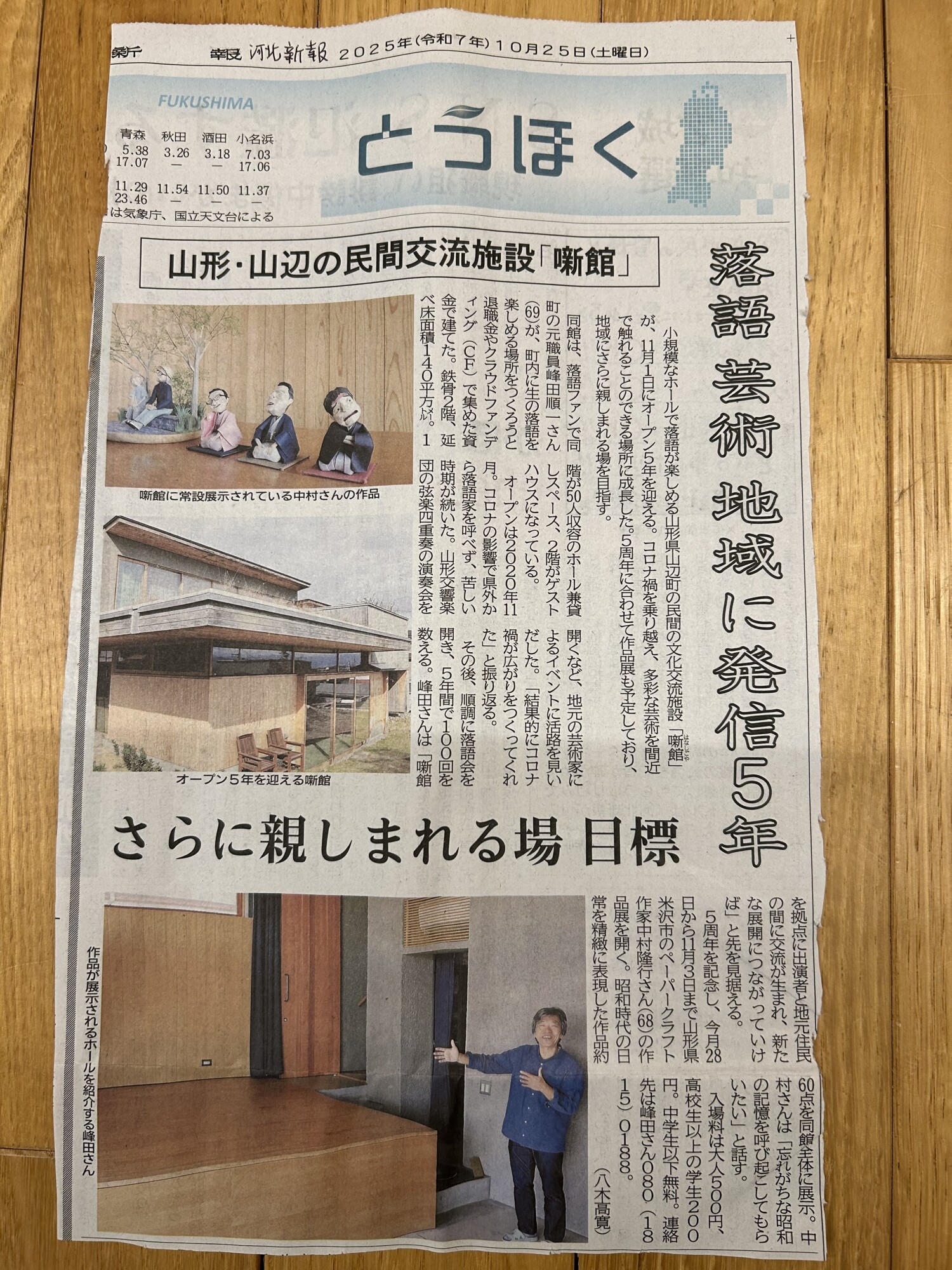 朝日新聞山形版(10.29)・河北新報(10.25)に、