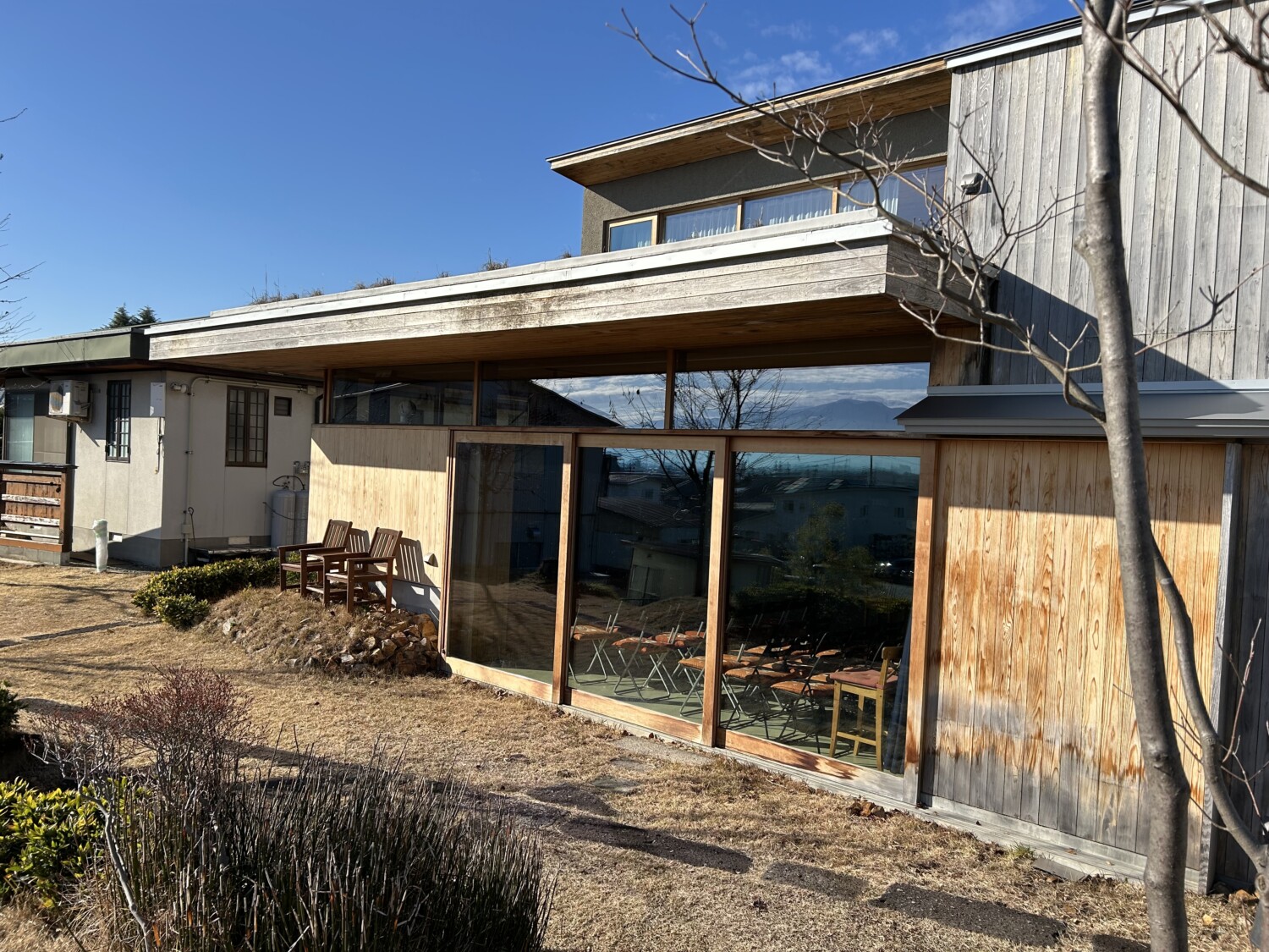 噺館の外の椅子に座って、ぬくぬくひなたぼっこ。
