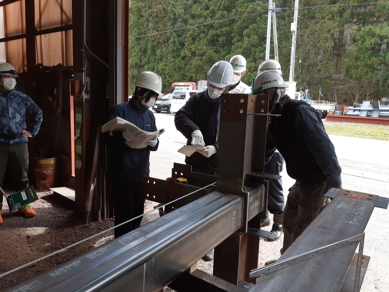 2020年4月25日 鉄骨製品検査 噺館(はなしごや)で使われる鉄骨の検査がありました。超音波検査なんていうのもありましたが、全然理解できず。 結果は全て合格、来週からこの鉄骨が建てられていくことになります。 前へ 次へ