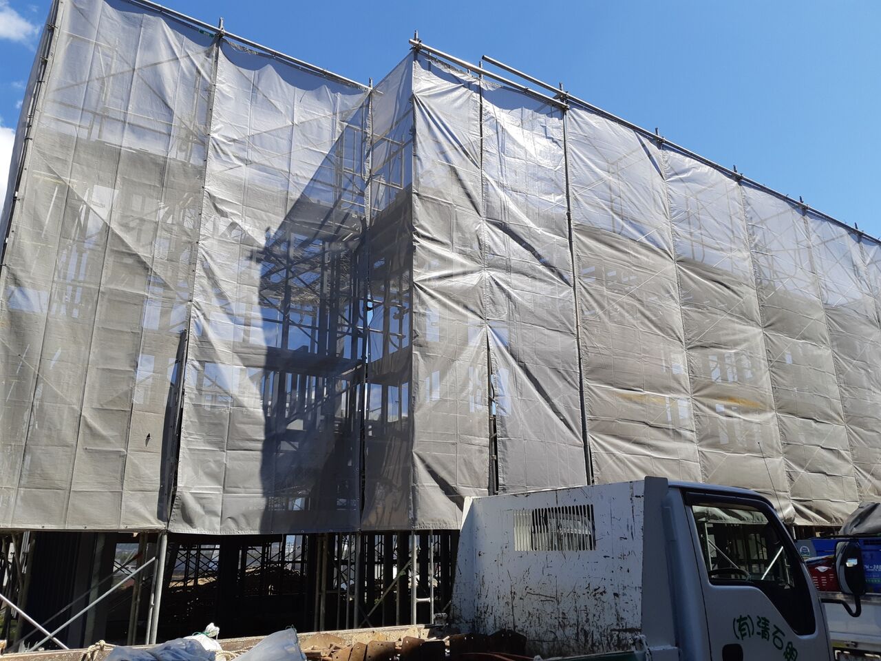 皆さんに見られるのが恥ずかしくなって、隠してしまいました。この中で作業は進められています。来週は屋根がかけられてくるのかなあ?