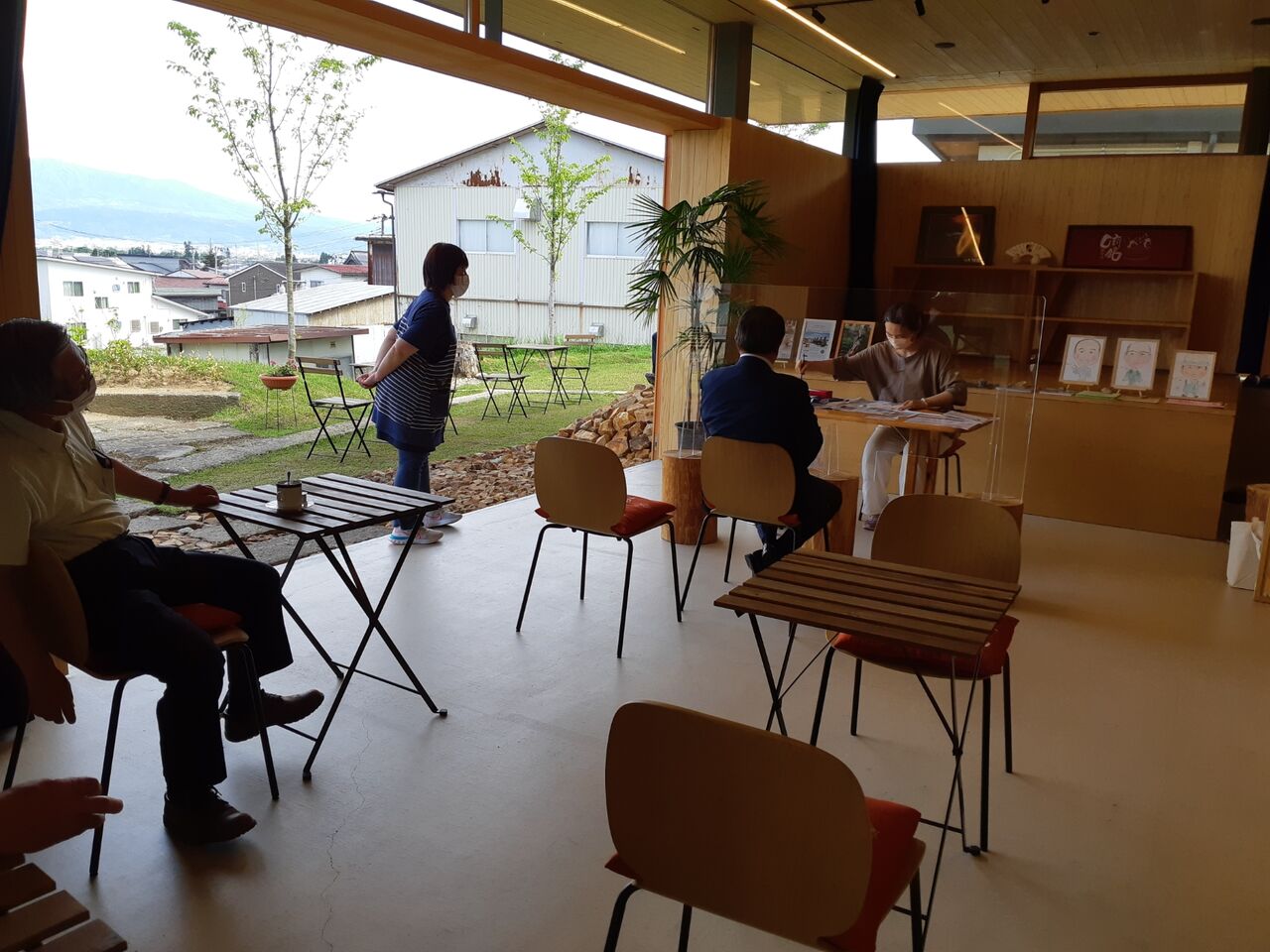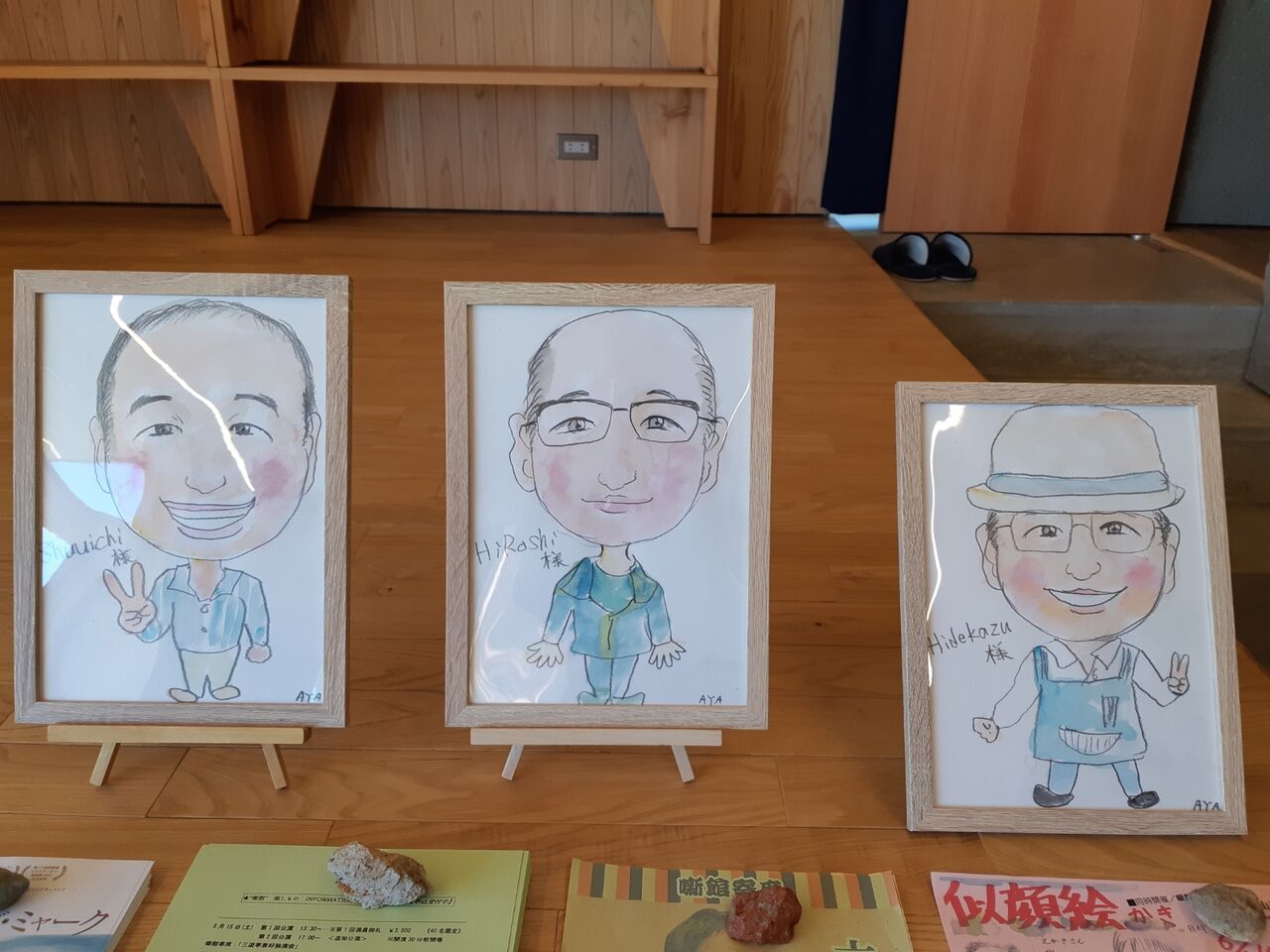 2021年6月5日 似顔絵パフォーマンス終了! “似顔絵パフォーマンス”が好評にて終了しました。たくさんの似顔絵を描いてくれた峯田亜弥さん、「Cafe のようなところで描くのが夢でした」とのこと、一人一人の似顔絵を額に入れて、手渡してくれました。皆さん、それを見て、思わずにっこり。ほんわかとした時間が流れていきました。噺館にきれいなお花を持ってきてくれた方、ありがとうございます。オッサンズCafeの皆さん、ありがとうございます。またしても、勝手に一人打ち上げ。 前へ 次へ