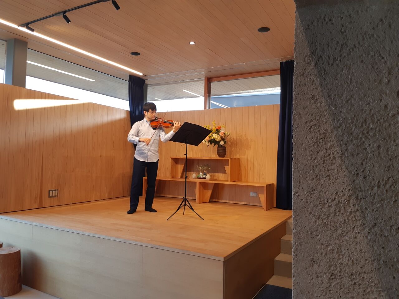 2021年11月10日 バッハ全曲シリーズ、最後のリハーサル 「早いです、もう最終回なんですね。」と、平澤さんが一人、噺館でのリハーサルへ。いよいよ今週末、「バッハ 無伴奏ヴァイオリンのためのソナタとパルティータ全曲シリーズ」が終了となる。平澤さんのコンサートシリーズが決まってから、楽屋の壁にはワイズバッシュのリトグラフをかけている。あれから6か月間、このワイズバッシュが平澤さんの挑戦を見守ってきました。このコンサートに真摯に向き合ってきた、ヴァイオリニスト・平澤さんの集大成、そしてヴァイオリン、ヴィオラ、チェロの弦楽三重奏も楽しみです。 前へ 次へ