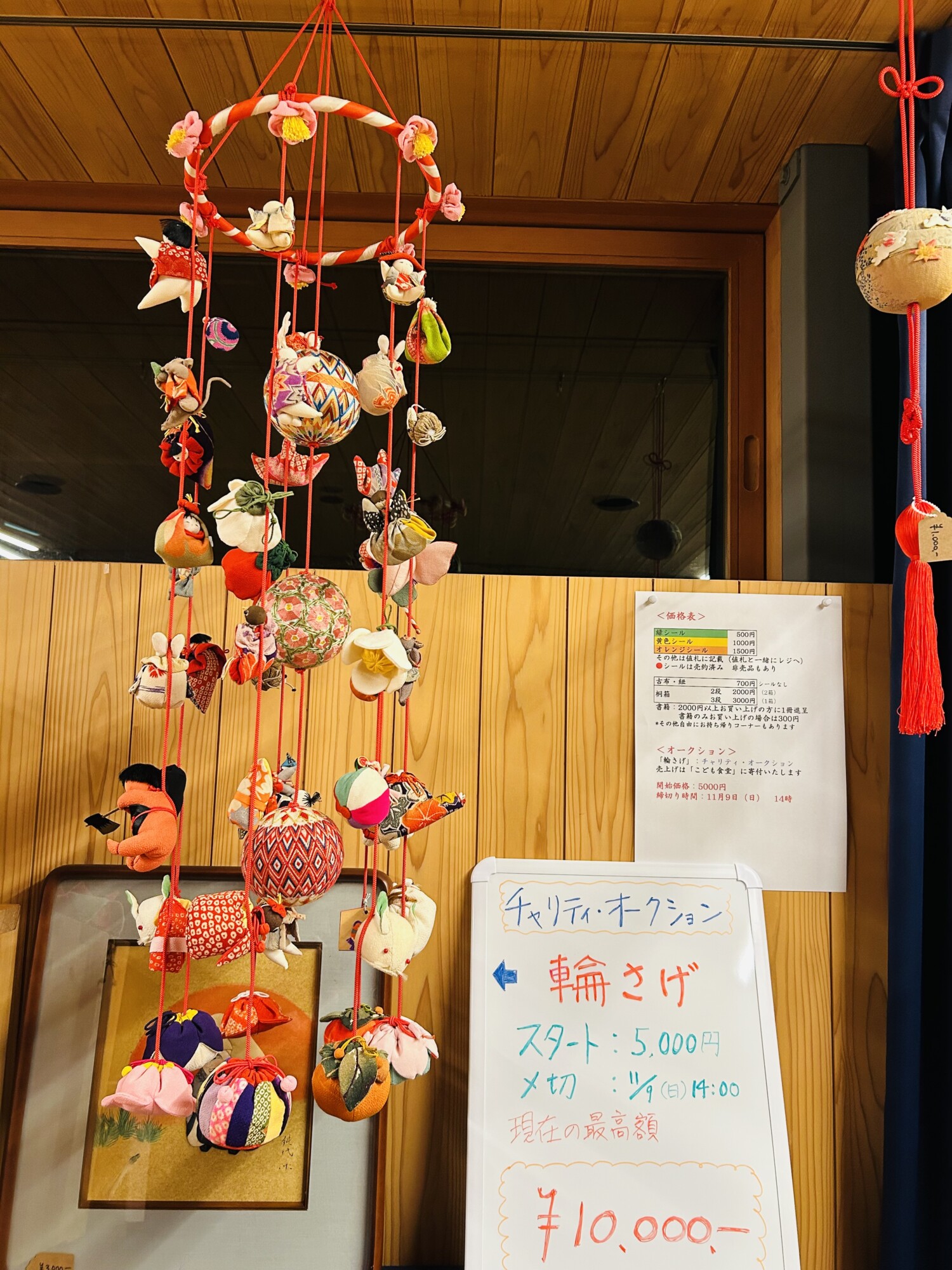 「輪さげ」のチャリティーオークションもあります。現在の最高額は10,000円だそう。