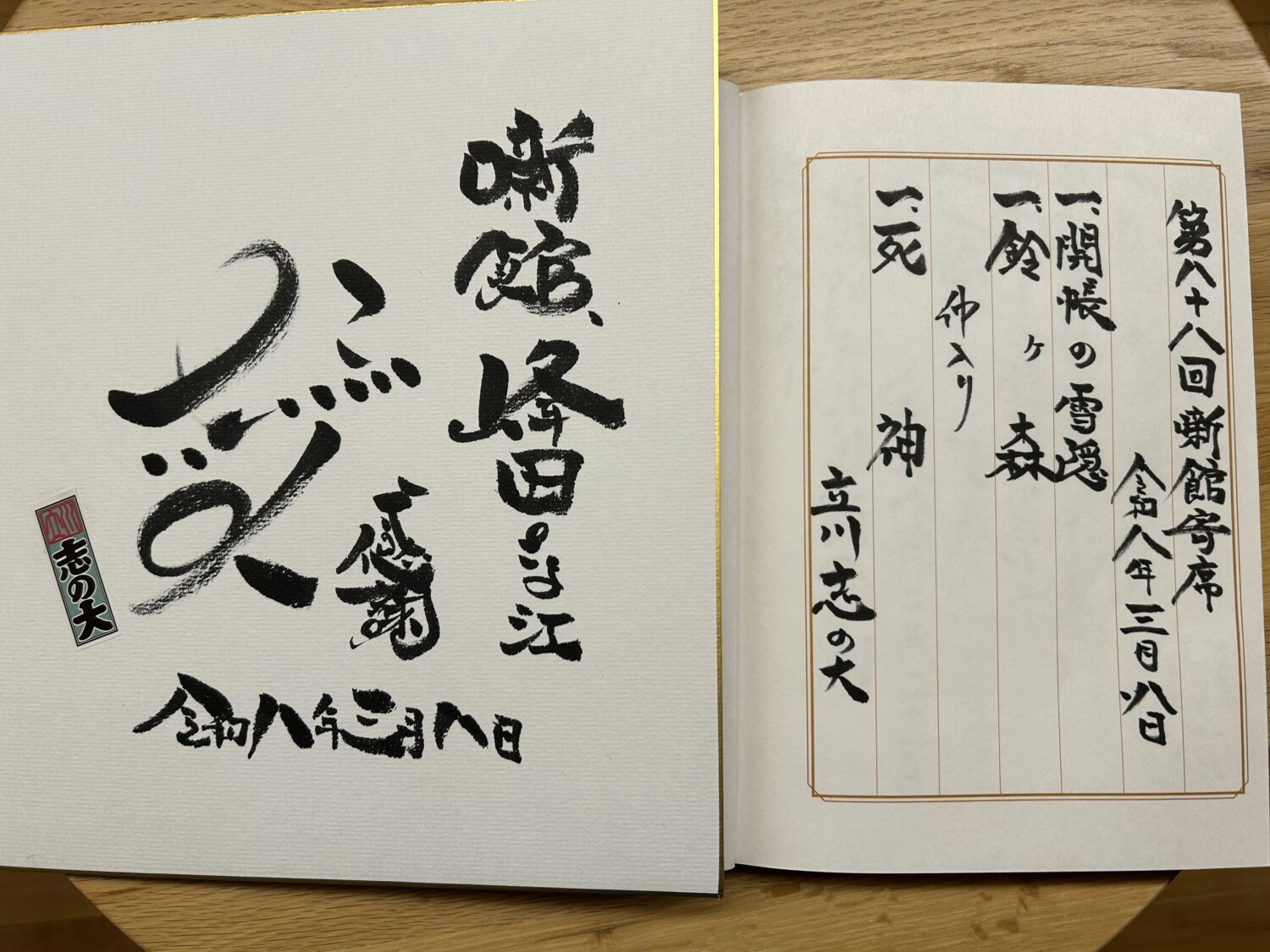 2026年3月9日 立川志の大独演会 噺館の高座に、大きくなって戻って来てくれましたぁー。 噺館寄席2月〜3月の若手落語家シリーズ第2弾、第88回「立川志の大独演会」、好評にて終了です。 噺館には今回が3度目、といってもこれまでは志の輔師匠の会での前座としてのもの、今回は違います。初のひとり立ちしての会となりました。 3席とも自ら楽しんで演じてくれたよう、噺の登場人物がイキイキと躍動していました。 前へ 次へ