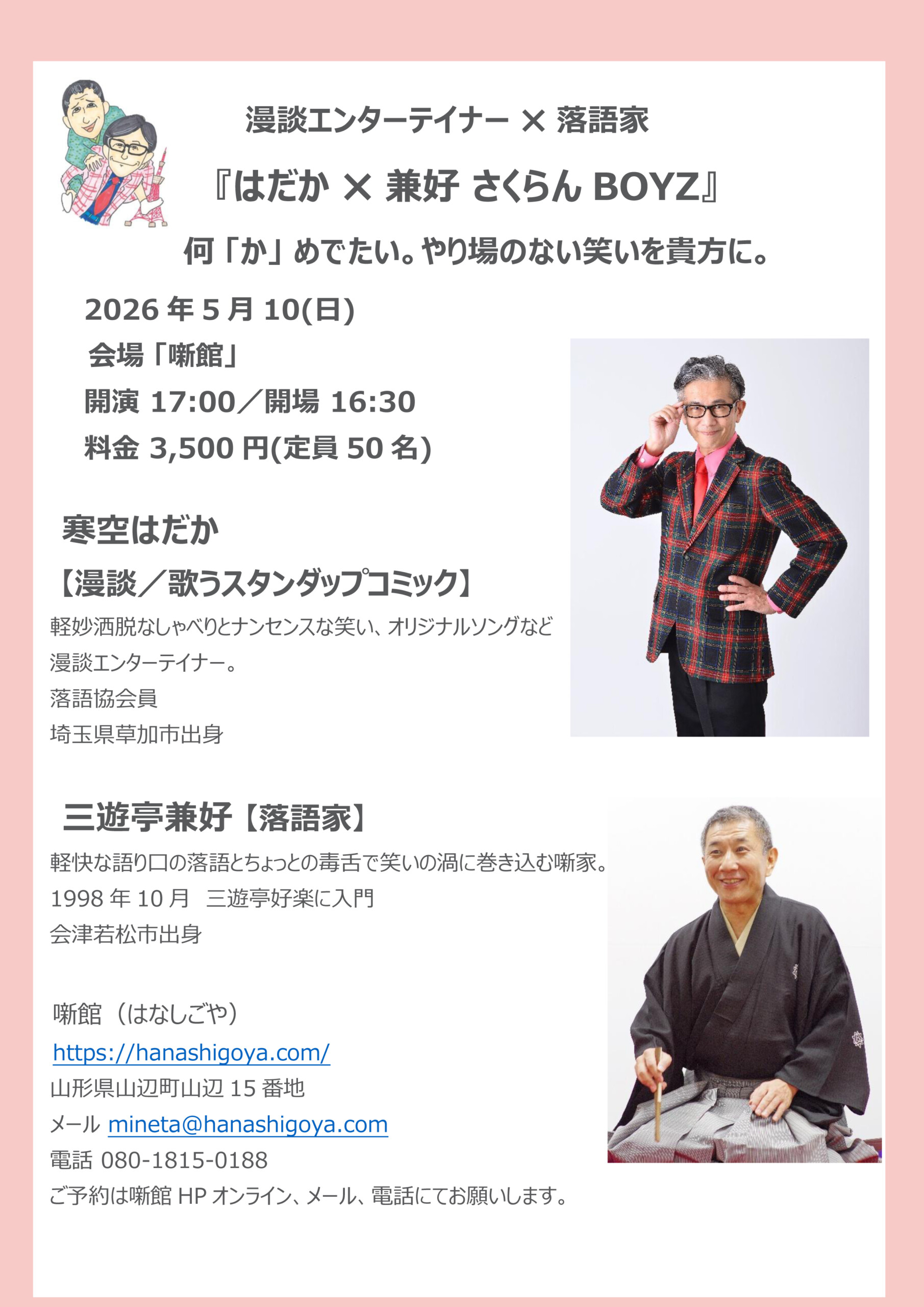 噺館寄席 第93回 / 漫談エンターテイナー×落語家『はだか×兼好 さくらんBOYZ』